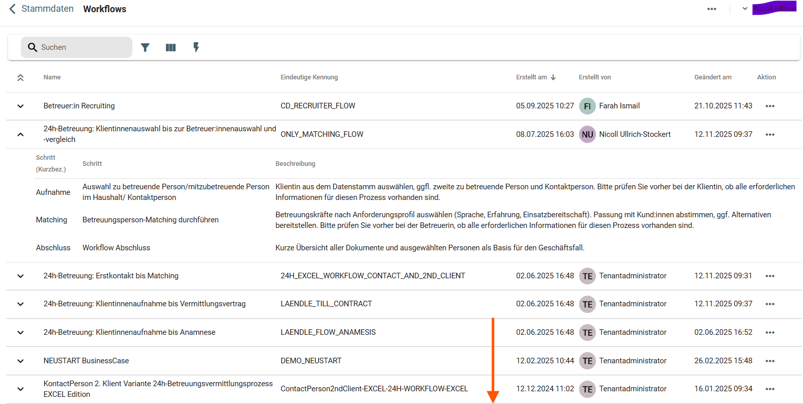 Der Bereich „Workflows“ verwaltet strukturierte Geschäftsprozesse, die als definierte Schrittfolgen im System abgebildet werden.